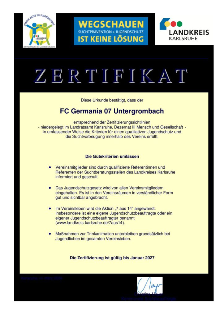 FC Germania 07 Untergrombach wird „Jugendfreundlicher Verein“